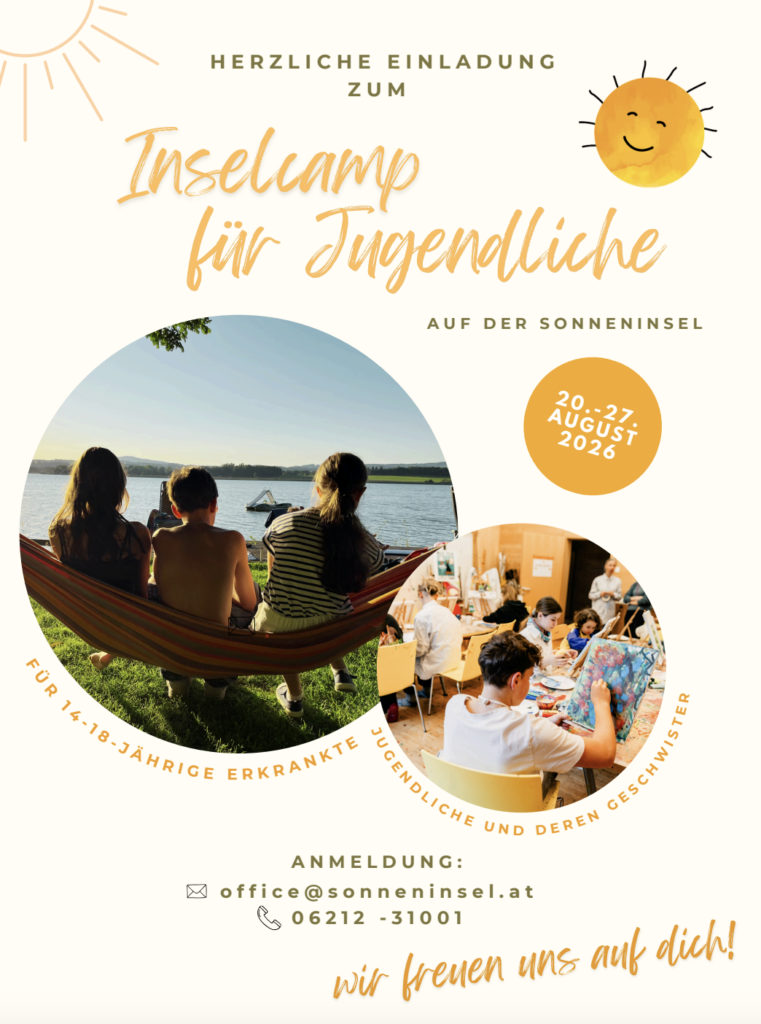Von 20. bis 27. August 2026 findet unser Inselcamp statt. Für diese Woche stehen noch freie Plätze zur Verfügung. Unser Angebot richtet sich an ehemals erkrankte Jugendliche und junge Erwachsene sowie deren Geschwister im Alter von 14 bis 18 Jahren.