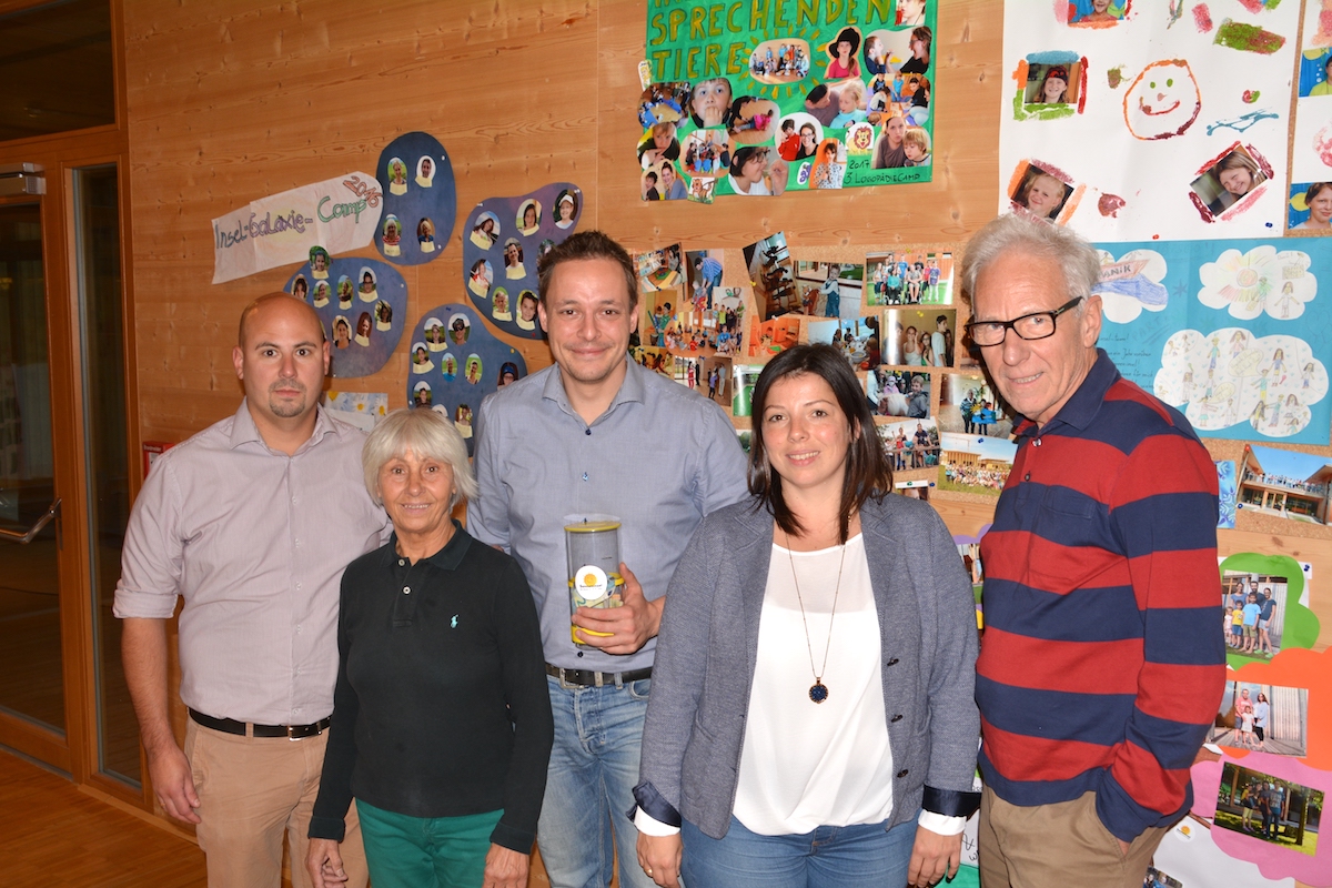 © Sonneninsel Seekirchen, bei der Spedenübergabe (v.r.n.l.): David, Stefanie, Carla und Josef Hirscher mit Thomas Janik (Mitte, GF der Sonneninsel Seekirchen).